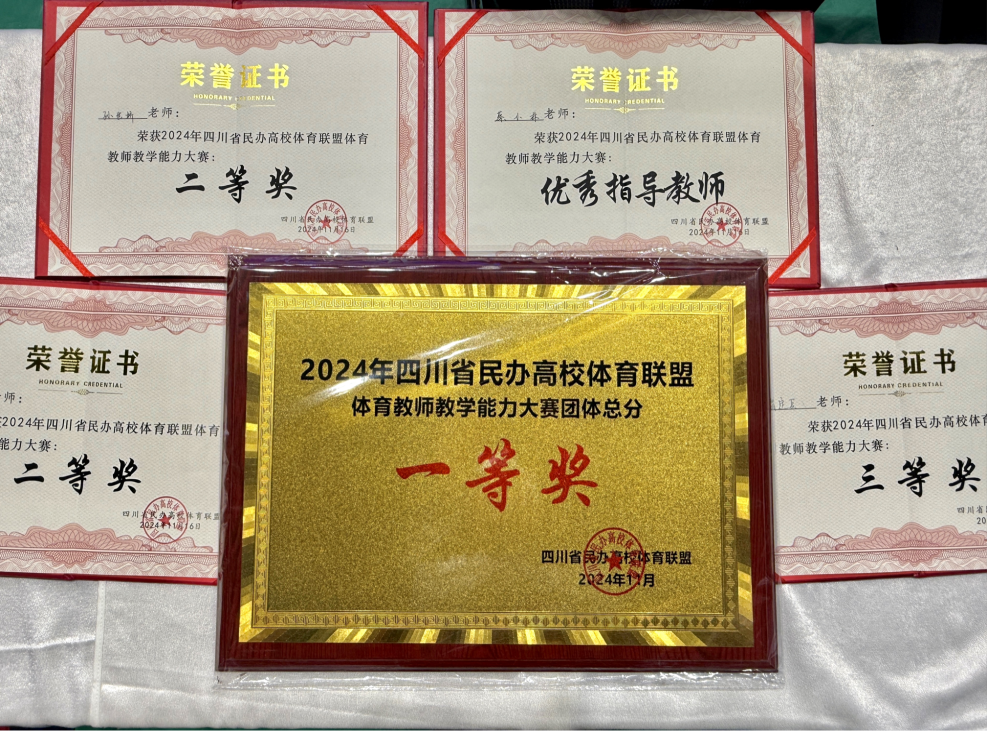 为提升体育教师的专业素养和教学技能,进一步推动体育教学的创新与发展。2024年11月16-17日,四川省民办高校体育联盟体育教师教学能力大赛在四川国际标榜职业学院举行。澳门网投唯一官网基础教学部体育教研室选派出孙世娇、曹定兵、慕明三位老师由蔡小林老师带队参加本次比赛。我校教师发挥出色,荣获两个二等奖、一个三等奖、优秀指导教师奖、团体总分一等奖的优异成绩。