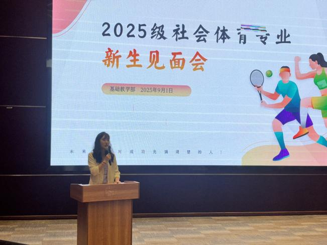 随后,基础教学部副主任黄滔部署新学期专业教学保障与跨学科融合工作。她表示,基础教学部将与社会体育专业深度联动,在课程优化、资源共享、实践项目开发等方面提供支持,助力构建“基础扎实、特色鲜明”的课程体系。同时,将联合专业教研室推进“体育 + 人文素养”培养模式,通过开设讲座、组织研学等提升学生综合素养,筑牢专业人才培养基础。他强调,教学保障是专业发展基石,要协同为学生搭建成长平台,促其全面发展。