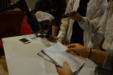 图5影视制作专业的拟声课上,学生正在用道具做电影里需要的声音