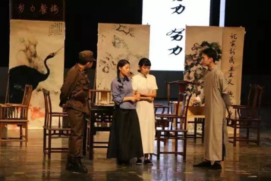 以戏文专业同学原创的话剧作品《车轨共文》为例,这部话剧以成都努力餐馆老板车耀先为原型,通过家庭的悲欢离合见证着国家社会的历史变迁,讲述了动荡年代社会各界人士为寻求民族解放、国家统一的共同理想而做出的不同抉择与斗争。此次剧目均由戏文专业师生独立创作排演,以生动感人的情节和震撼人心的表演打动了在场观众。