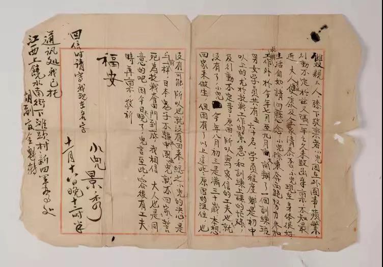 1938年8月,他虽已生病住院,但信中和父母交流的仍然是“日本强盗已打到我们江西来了……我县是否准备好了,组织好了,不要敌人来了惊慌失措,应该处处防御,处处抵抗,才能战胜敌人。”
