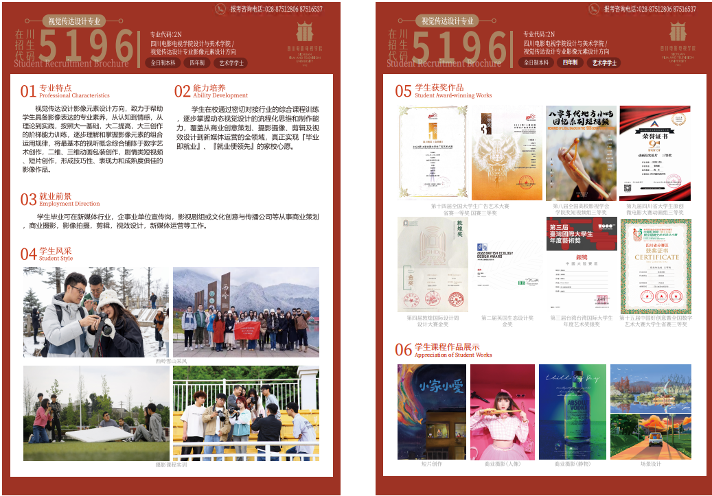 特别是运用各种AI工具,缩短创作周期,提高创作效率,高质量生产成熟的视频作品,对接企事业单位的宣传和商业需求。视觉传达设计专业的影像设计方向,主要着眼于动态设计,培养行业需要的应用型复合人才。动态设计,在当前社会背景下,运用影像创作思维,将文案创意,内容拍摄,后期制作全流程整合教学,帮助学生实现二维设计图的三维运动,微剧情故事的影视化表达。特别是运用各种AI工具,缩短创作周期,提高创作效率,高质量生产成熟的视频作品,对接企事业单位的宣传和商业需求。