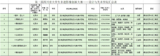 第二届四川省大学生非遗影像创新大赛参赛及获奖名录