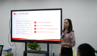 会议上,易静老师带领大家回顾习近平总书记“七一”重要讲话内容,由“中国共产党的诞生”、“中国共产党百年历史”、“四个伟大成就”、“以史为鉴开创未来”四个方向深入领会习近平总书记提出的新思想,对“七一”重要讲话进行解读学习。
