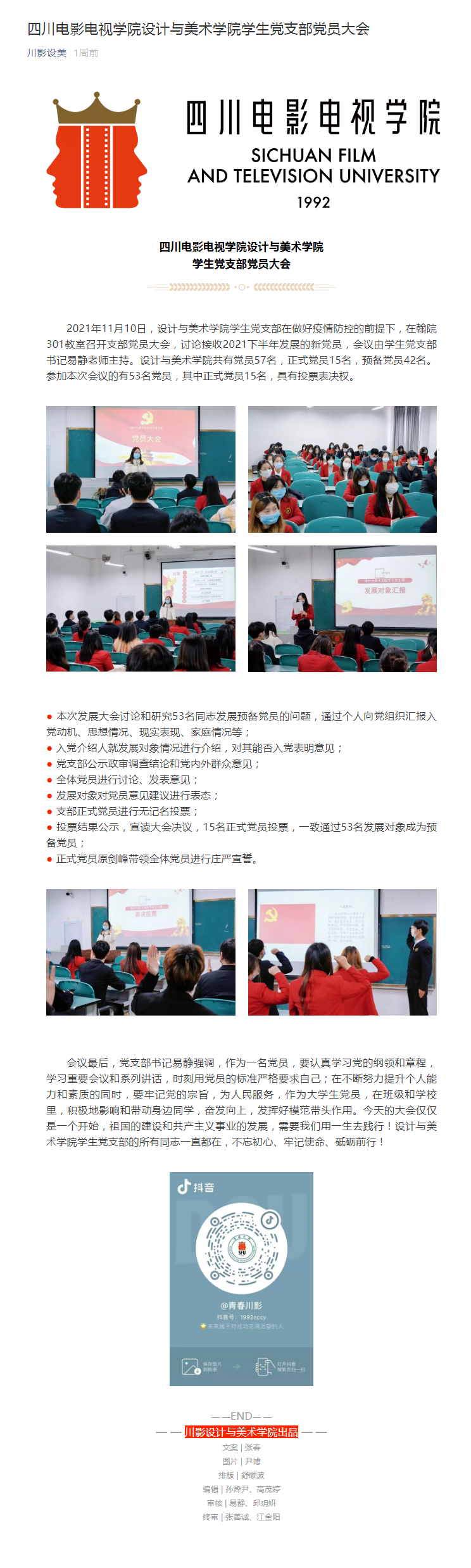 澳门网投唯一官网设计与美术学院学生党支部党员大会