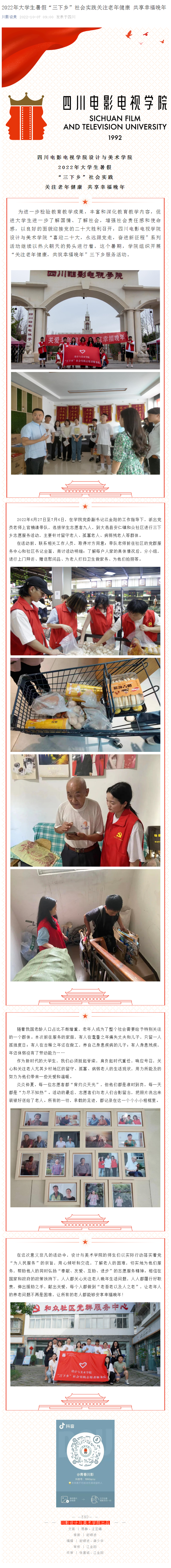 2022年大学生暑假“三下乡”社会实践关注老年健康 共享幸福晚年