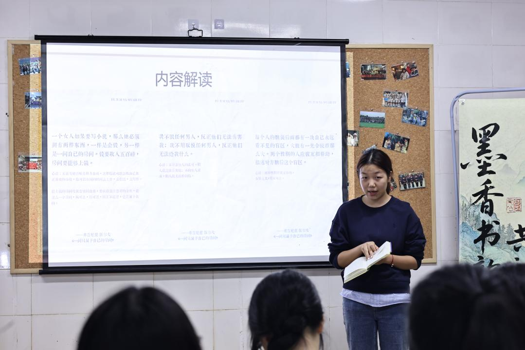 其中,樊佳玥同学通过《一间只属于自己的房间》展开深度剖析,结合伍尔夫"物质基础与心智自由"理论,以当代现实困境为对照,引发在场师生对性别平等议题的热烈思辨。