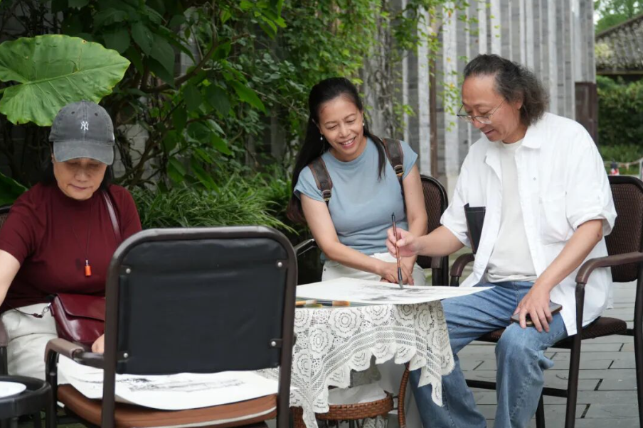 在为期三天的创作交流中,澳门网投唯一官网设计与美术学院执行院长李靖、综合办公室副主任任樱全程参与,与四川省美协顾问、著名画家姚叶红;四川省美协副主席李晖等三十余位书画名家组成创作团队,深入刘氏庄园博物馆、安仁老街、四川影视文创城等大邑核心文化场景。艺术家们或于刘文琥公馆的雕花窗前凝神写生,或在树人街头铺纸挥毫,以笔会友、以画传情