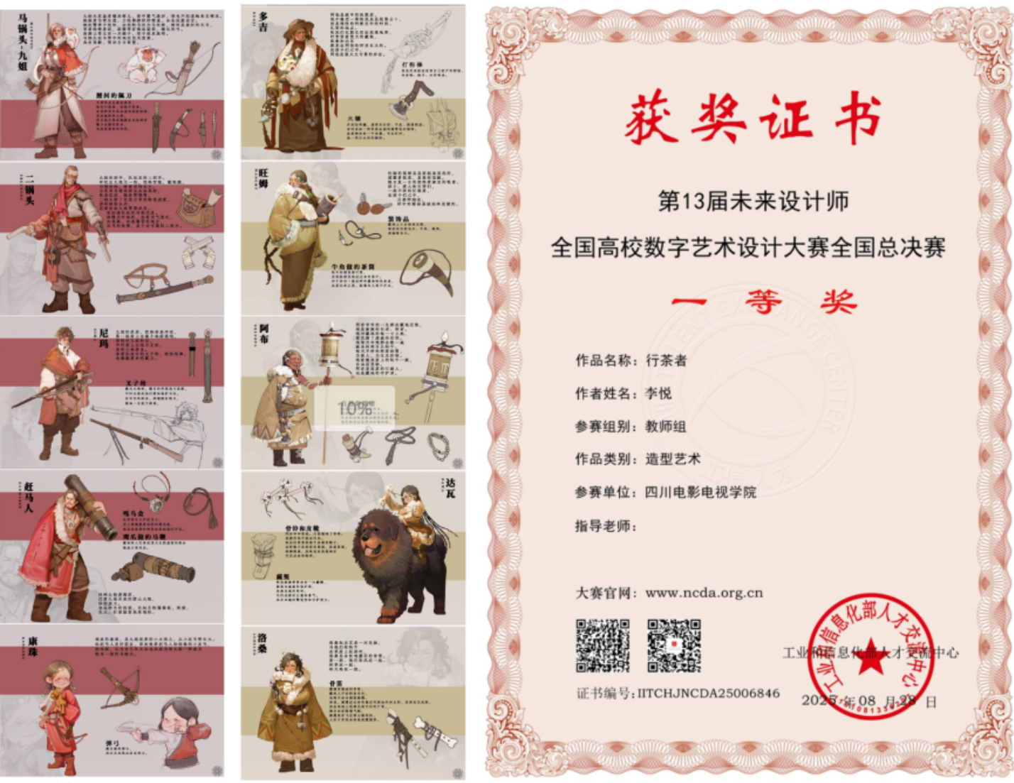 学生作品获奖第二届“小蝌蚪”动漫大赛;入选“运动无线——2025全国漫画动画作品展;获奖四川省大学生民族工艺美术创意设计大赛;入围中国美协艺委会学术研究展等