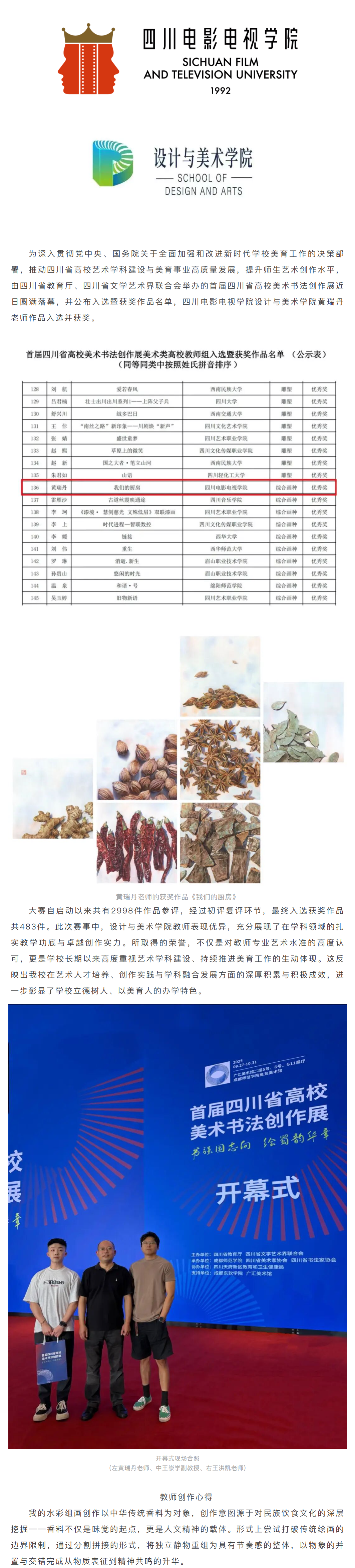 喜报 | 设美教师在首届四川省高校美术书法创作展中斩获佳绩