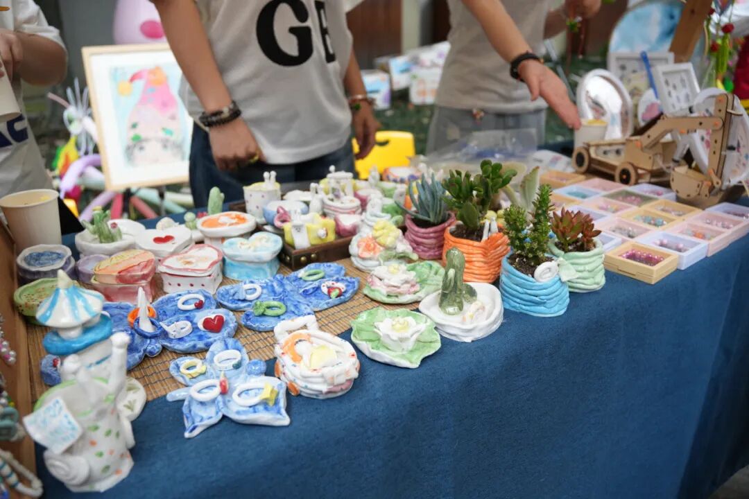 与此同时,义卖区热闹非凡,展台上摆满了孩子们精心制作的手机绳挂件、项链和手工陶瓷等精美物品。这些手工艺品含着孩子们的心血与创意,大家纷纷热情选购用实际行动支持小朋友们,为他们的努力点赞。整个活动现场洋溢着欢乐与感动,爱在互动中不断传递。