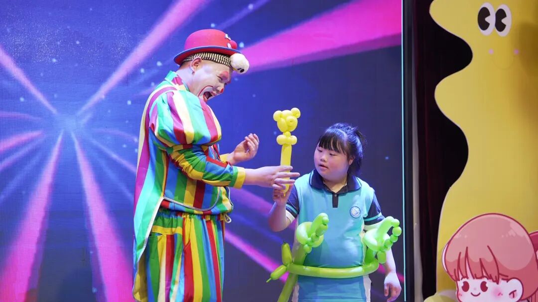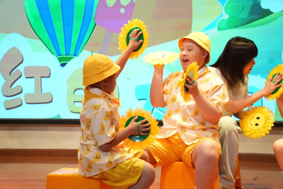 活动开始,老师与同学们一同观看了孩子们精心准备的六一文艺表演。舞台上,孩子们用舞蹈和歌声展现着他们的自信与才华。尽管他们的表达方式或许与常人不同,但那纯真的笑容和努力的身影却深深打动了在场的每一个人。掌声与欢呼声中,我们看到了孩子们对生活的热爱,也感受到了特殊教育工作者们的辛勤付出。