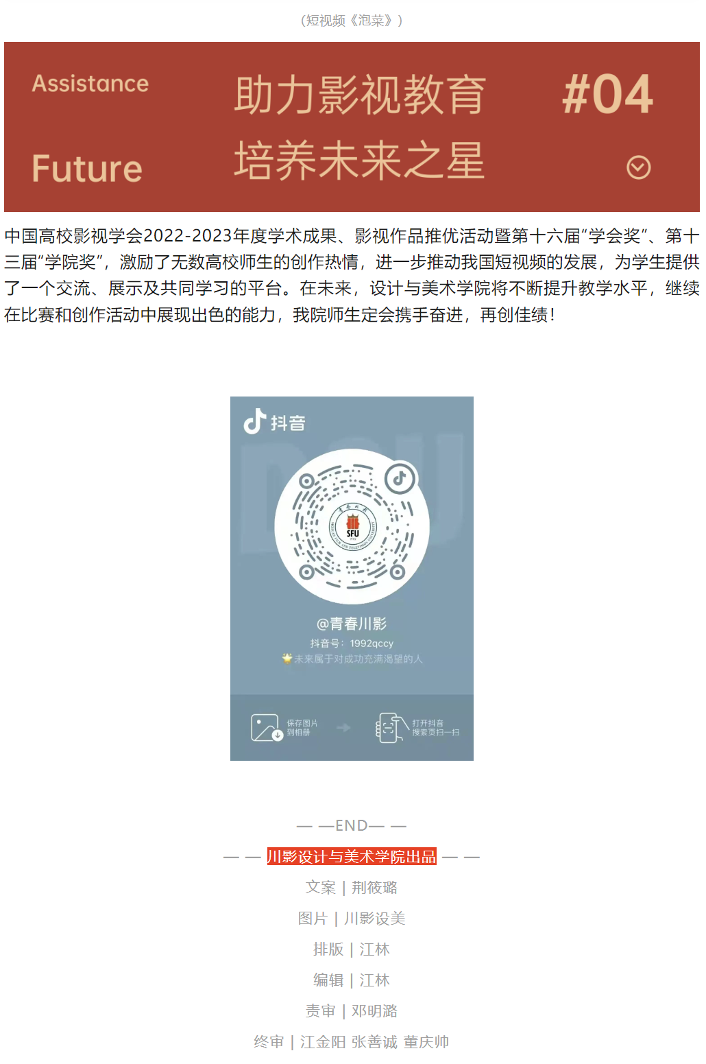 喜报 ▍设计与美术学院首次荣获中国影视学院奖
