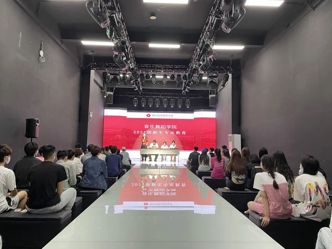 8月29日晚,音乐舞蹈学院2021级新生专业教育活动 ,按不同专业和方向,分别在学校艺步楼、时尚发布中心、金厅和蓝厅等各个教学场馆展开 。全院新生28个班级共1460位同学参加了本次活动。
