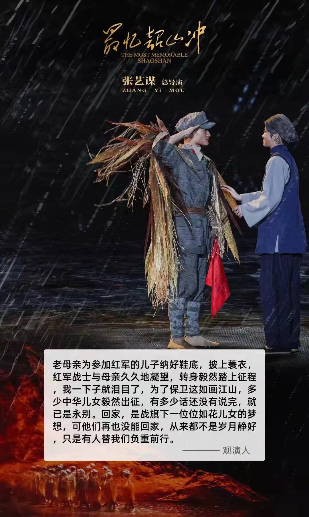3、《最忆韶山冲》是一部在毛主席家乡的红色题材、张艺谋总导演编创的一部舞剧,对学生也具有训练价值。