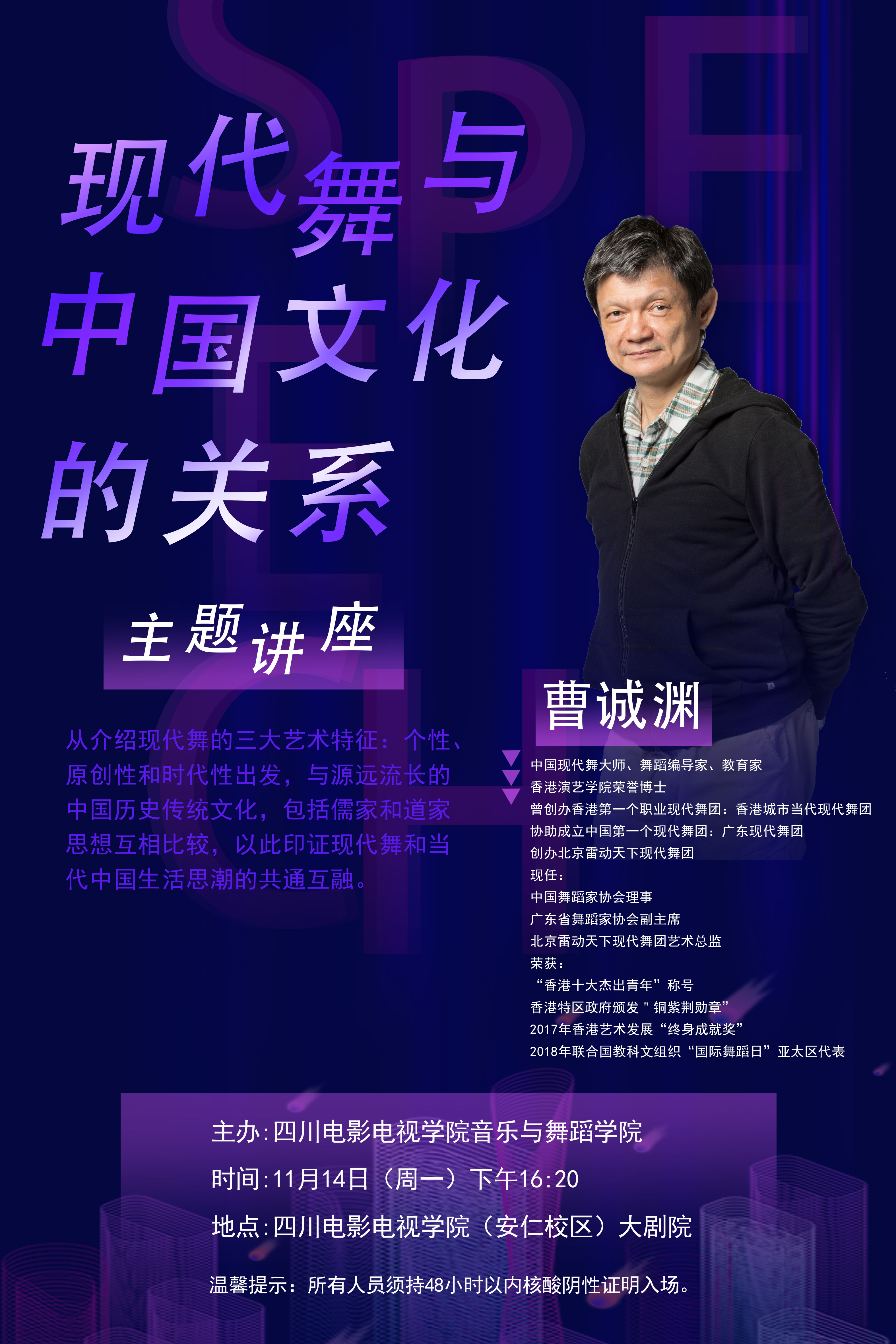 2022年11月14日,著名舞蹈编导家曹诚渊在我校安仁校区学术报告厅贡院大剧场开展以《现代舞与中国文化的关系》为主题的讲座,澳门网投唯一官网常务副校长李健教授、音乐与舞蹈学院院长陈志惠教授、副院长陈翔副教授、副院长陈薇副教授以及部分师生参加本次讲座。
