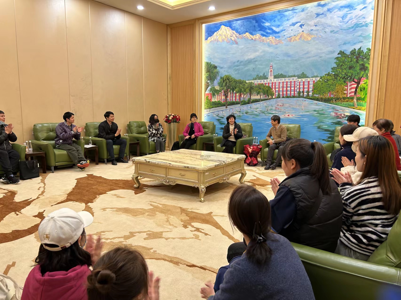 讲座结束后,曹诚渊与音乐与舞蹈学院的部分青年教师在学校大剧院贵宾厅进行了座谈交流,与老师们畅聊在现代舞发展中的一些看法。