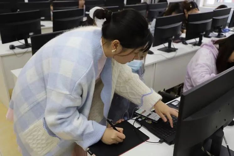 (在校实训中的何霁萤和作品)