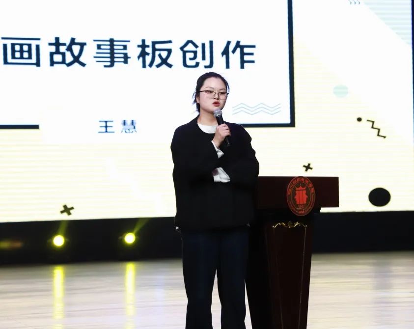 首先,新媒体学院执行院长段晓冉为大会致辞,段院长对动画专业的同学的作品给予极高的肯定,她提到今年是川影开启第二个三十年的第一年,四川电视电影学院的师资力量越来越强,动画教研室的老师们也表现优秀,希望新媒体学院动画专业在老师们的带领下,在同学们的努力下,向着建设省级、国家级一流专业的方向进发。