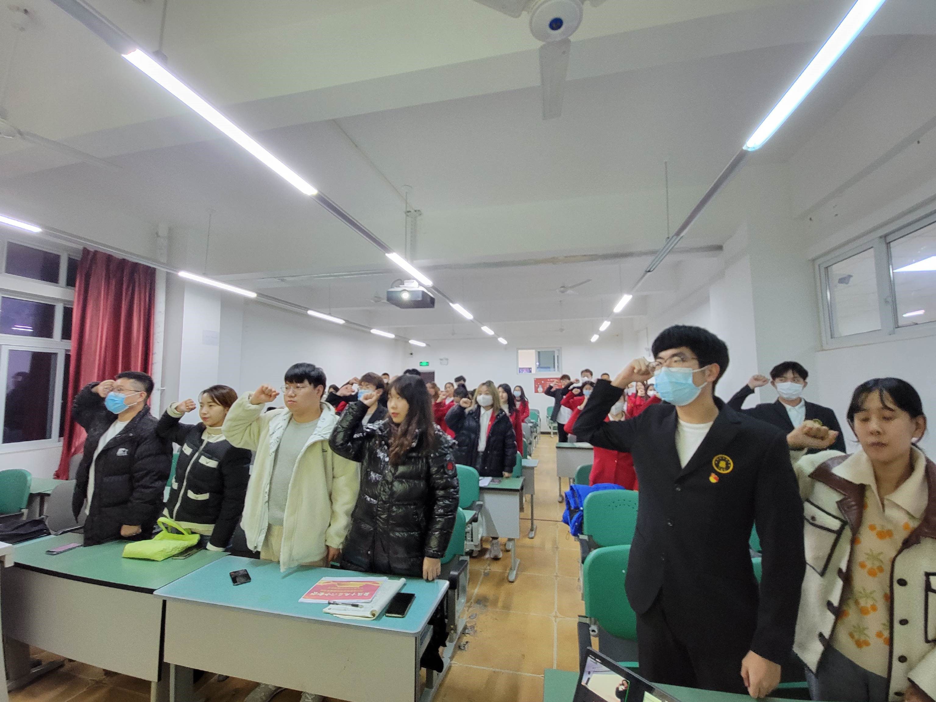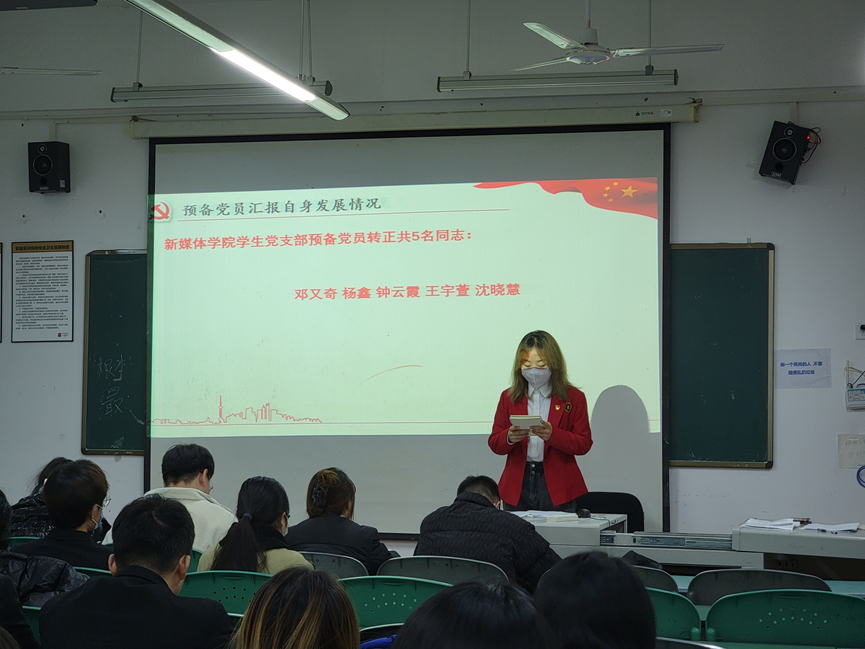2021年12月15日下午19:00,新媒体学院学生党支部于闻院207召开新媒体学院学生党支部2021下半年年预备党员转正大会与学习第十九届六中全会精神学习会议。会议主要讨论是否接收邓又奇等5名同志为中共党员的会议、共同学习第十九届六中全会精神学习会议。