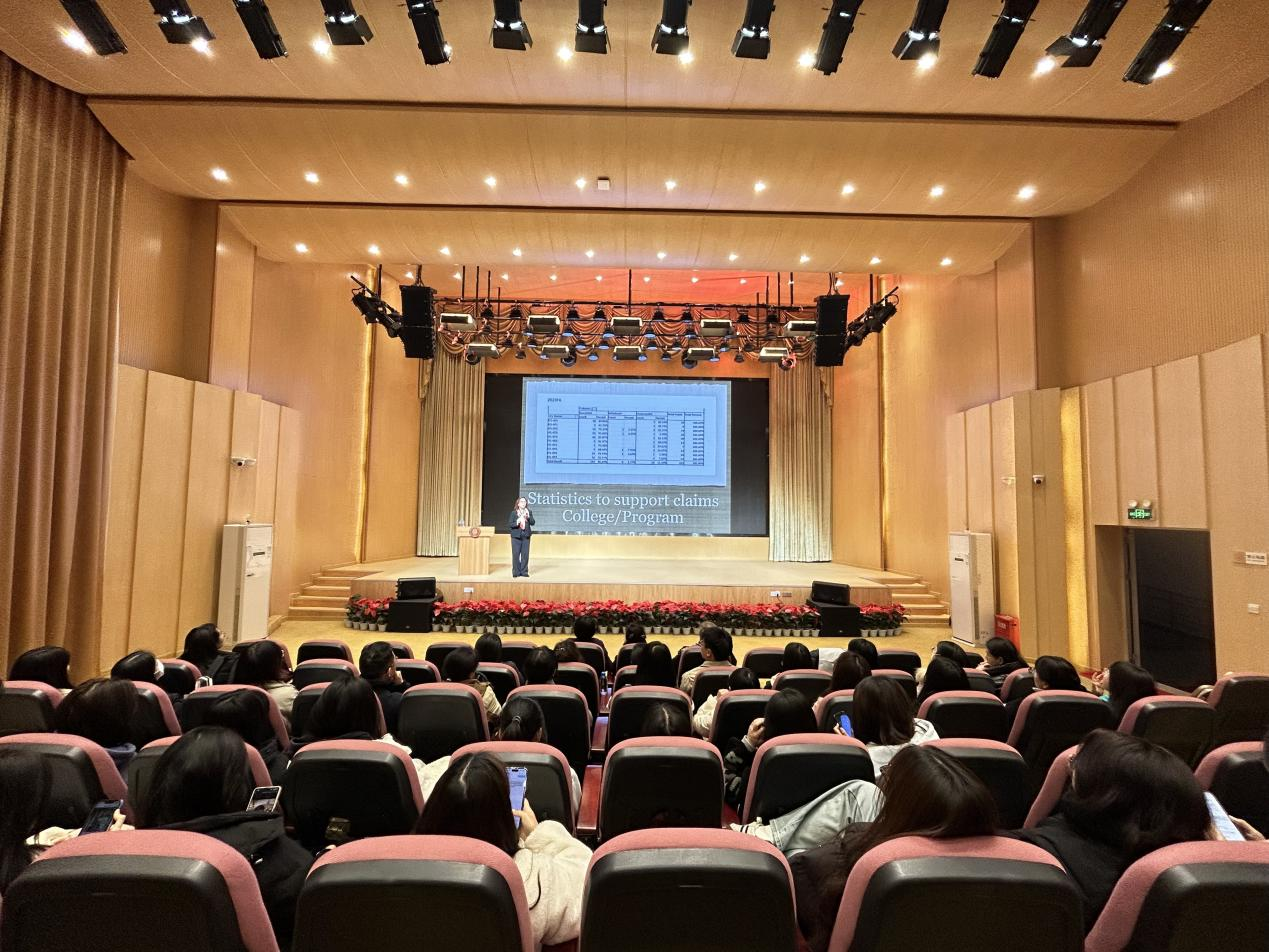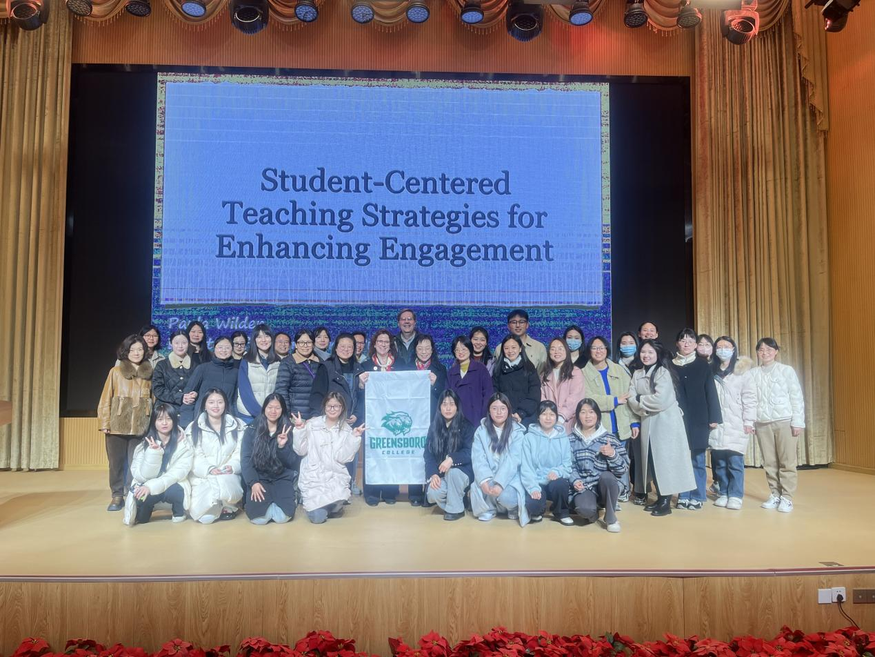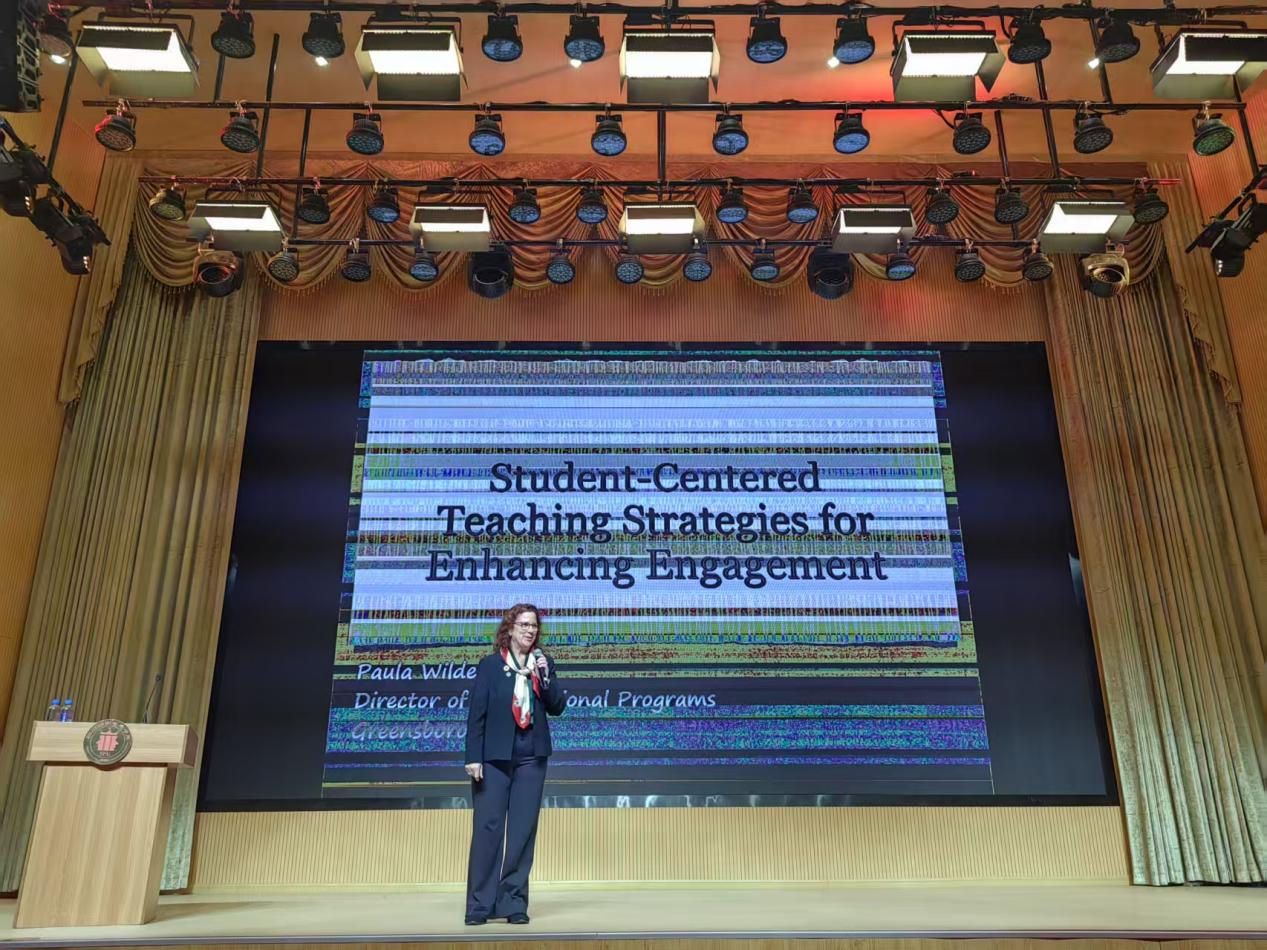 2025年3月31日15:00,澳门网投唯一官网(安仁校区)音乐厅内师生云集,由国际创意学院主办的“‘以生为本’施教策略:提升参与度”学术讲座在此隆重举行。本次活动特邀美国格林斯伯勒大学副校长兼教务长Dan Malotky及格林斯伯勒大学国际交流项目主任Paula Wilder参加,其中资深英语教育专家Paula Wilder担任主讲,通过理论解析与实例结合,为听众带来了一场关于创新教学模式的深度分享。国际创意学院副院长何瑛,英语教学部副主任仪雪,办公室主任何慧珍,学院教学督导,教研室负责人等学院教师参加。