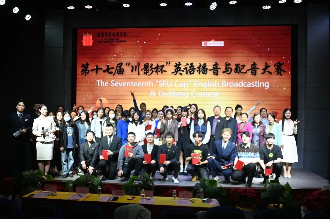 在合影留念中,第十七届“川影杯”英文播配大赛圆满完结。