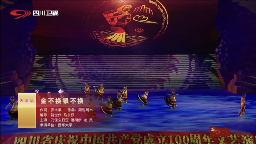 6月25日晚,四川省庆祝中国共产党成立100周年文艺演出——“巴蜀儿女心向党”在四川省体育馆盛大举行。演出由“开天辟地”“火红年代”“春潮激荡”“走向复兴”等主要篇章和序章、尾声组成,2000余名演职人员参加,是四川省近10年来举办规格最高、规模最大的文艺盛会。