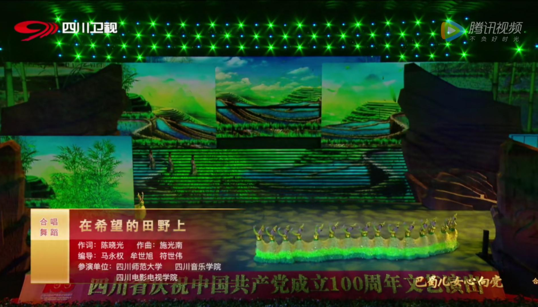受四川省文旅厅抽调,我校音乐舞蹈学院舞蹈系教师马永权、符世伟作为《巴蜀儿女心向党》主创团队成员,编排了我校90名学生参与演出的节目《在希望的田野上》《在灿烂阳光下》,同时还编排了其他单位及学校参与演出的节目《再唱山歌给党听》《不忘初心》《金不换银不换》。值得一提的是,我校学生参与演出的节目均在主舞台表演,多次受到领导以及总导演的肯定。