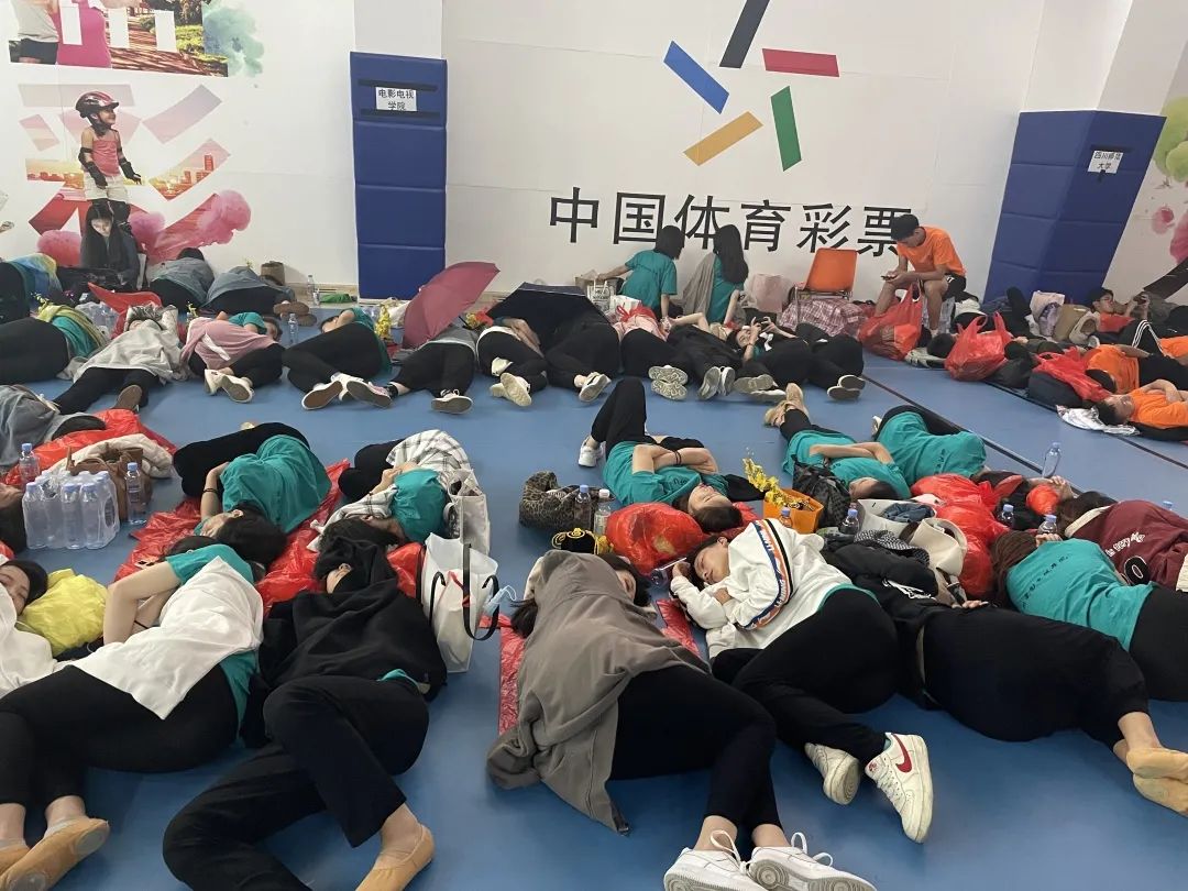 因现场座椅有限,川影参演的同学们在排练厅躺下休息。