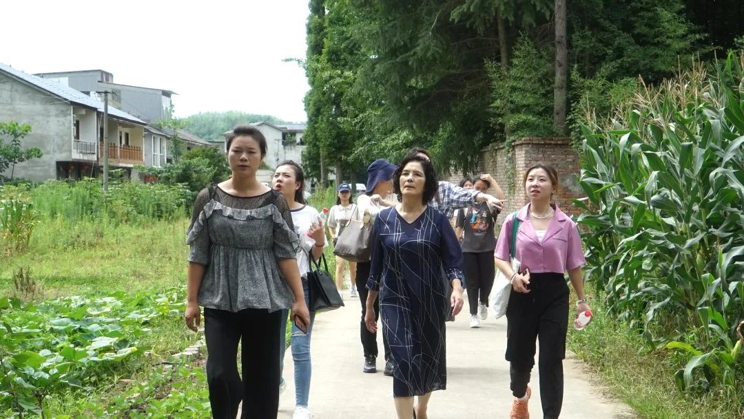 川影党委副书记、纪委书记韩卡兰一行与实践团成员前往大邑县鹤鸣乡新民村实地走访。