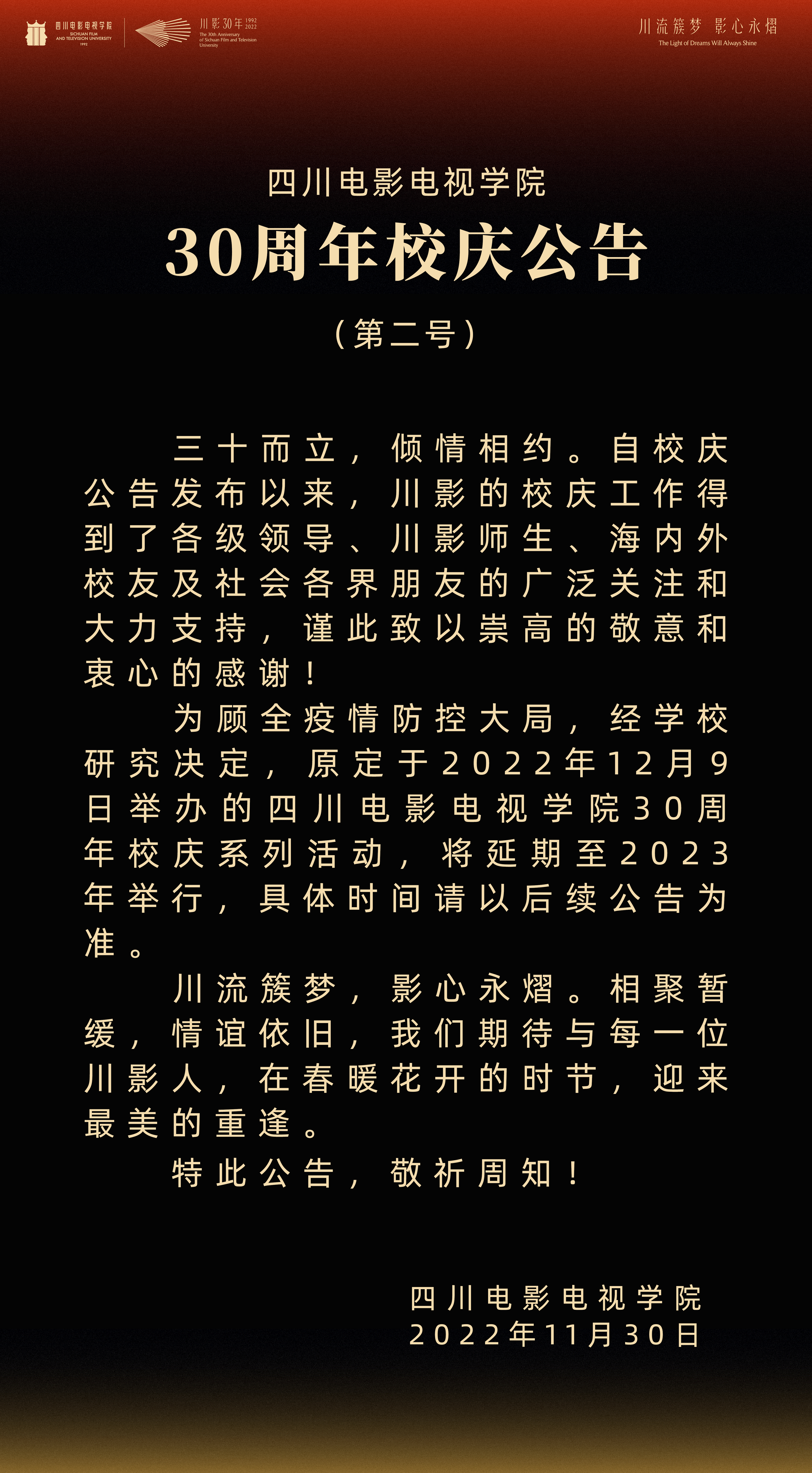 澳门网投唯一官网30周年校庆公告(第二号)