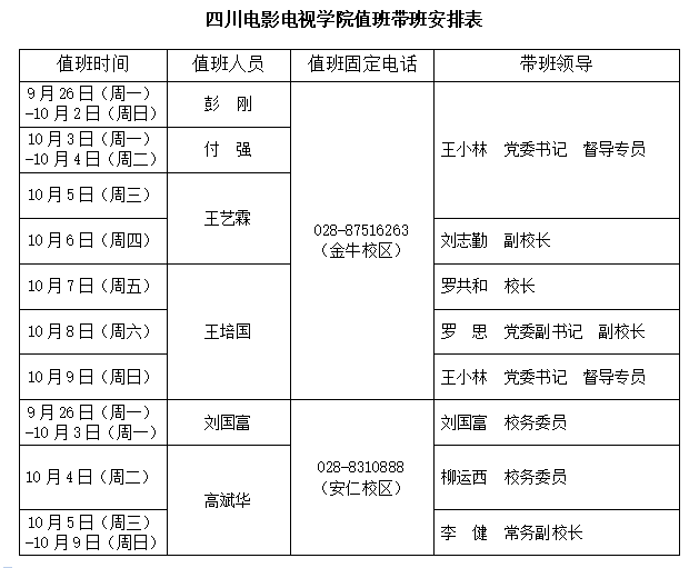 3.为保证学校正常教学和生活以及学生返校接待工作,各部门、各学院根据工作情况按要求做好值班人员安排。