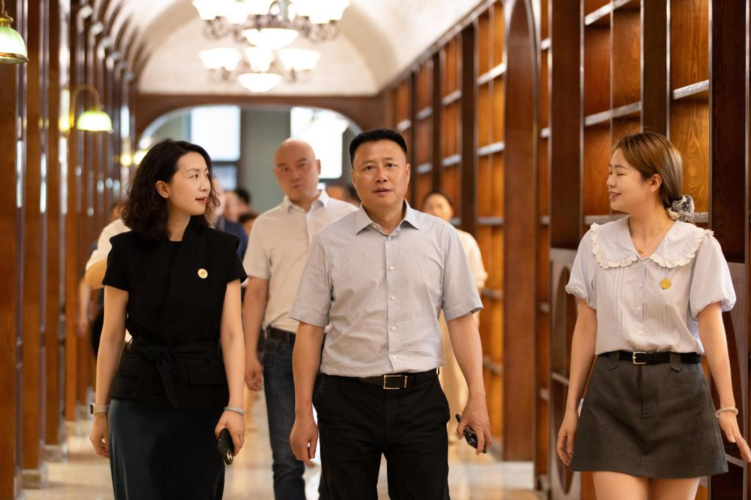 调研组一行还前往数字影视文旅产业发展先行示范区,实地考察了四川影视文创城摄影棚集群、民国风情街、道具服装中心和电影博物馆,对学校在数字影视文旅产业发展方面的先行探索给予了肯定。在图书馆,毛端喜副书记详细了解了图书馆的馆藏资源、数字化建设以及服务师生的情况。