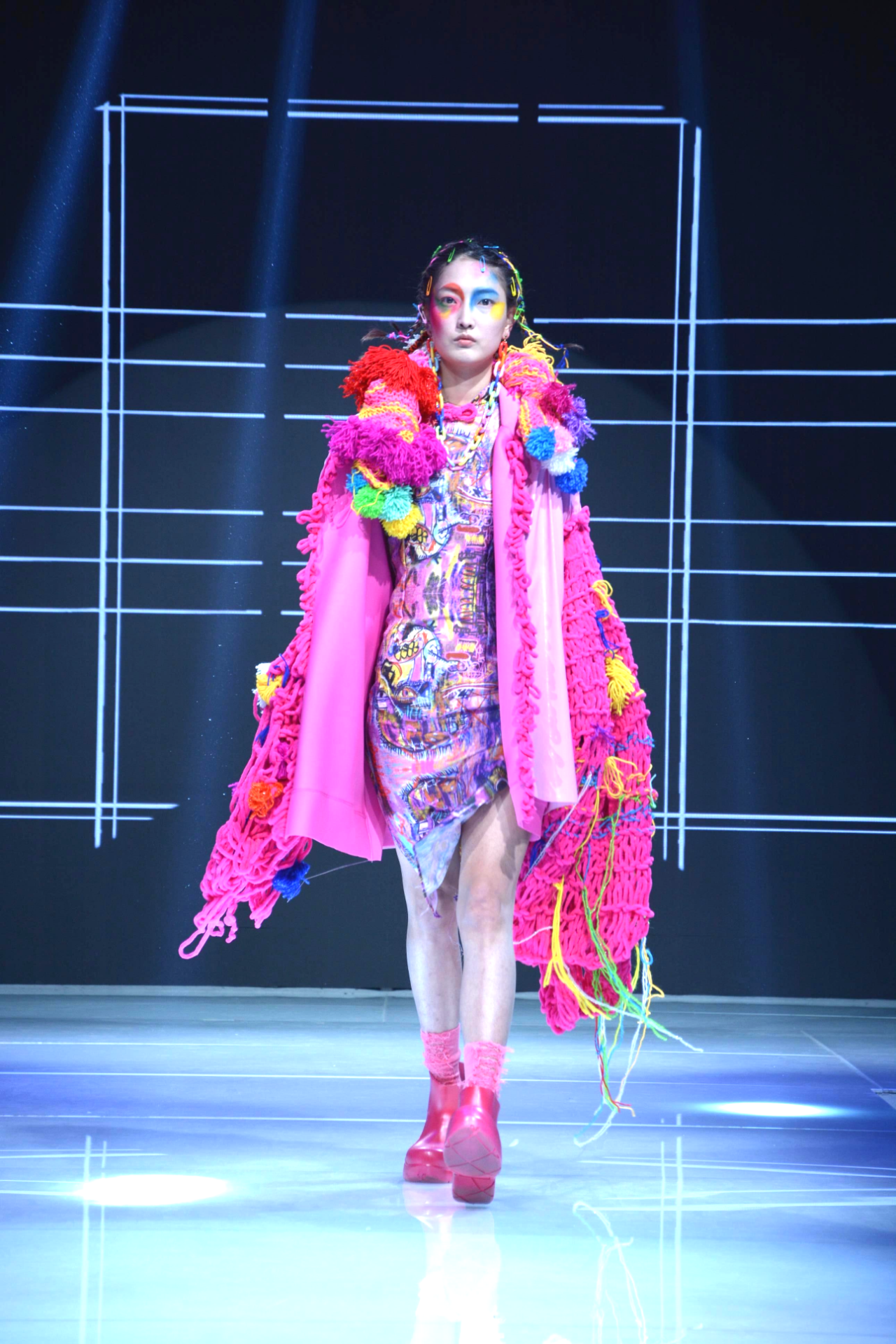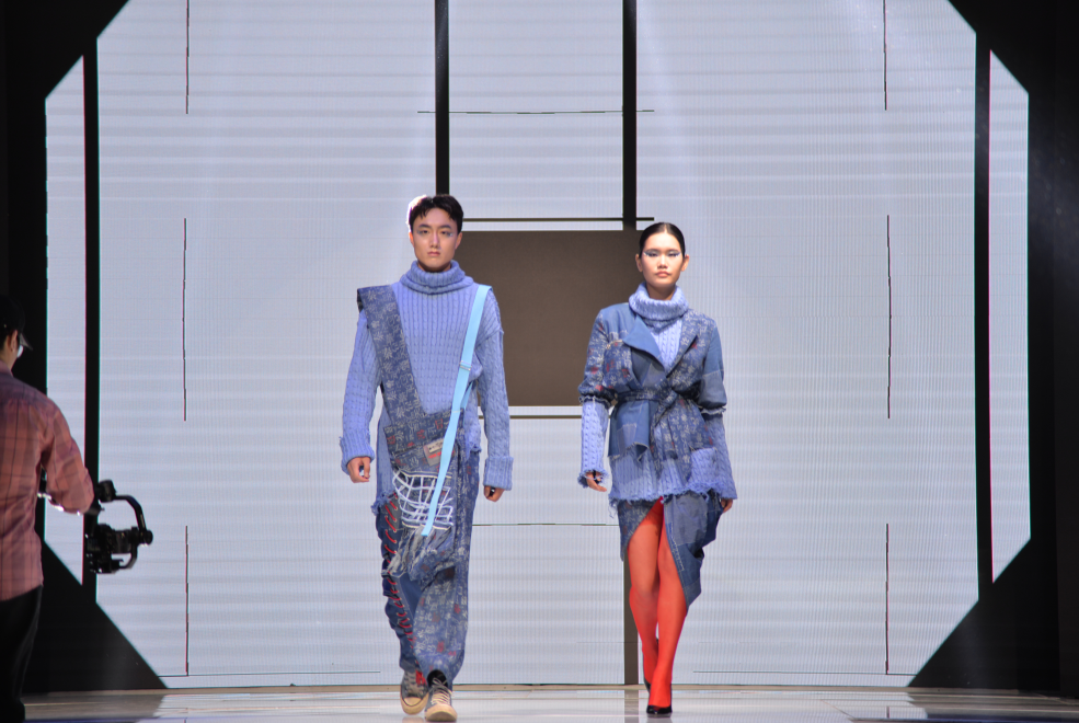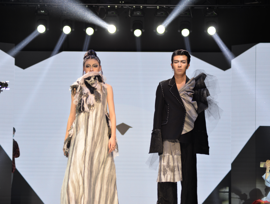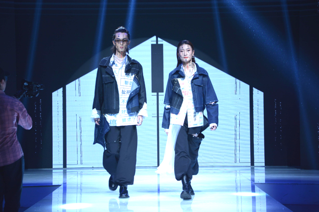参赛同学们运用扎染、印花、拼接等服装工艺结合不同的剪裁手法表达着自己的创意,个性鲜明的服饰与妆容体现出同学们对中国传统文化的思考与解构。