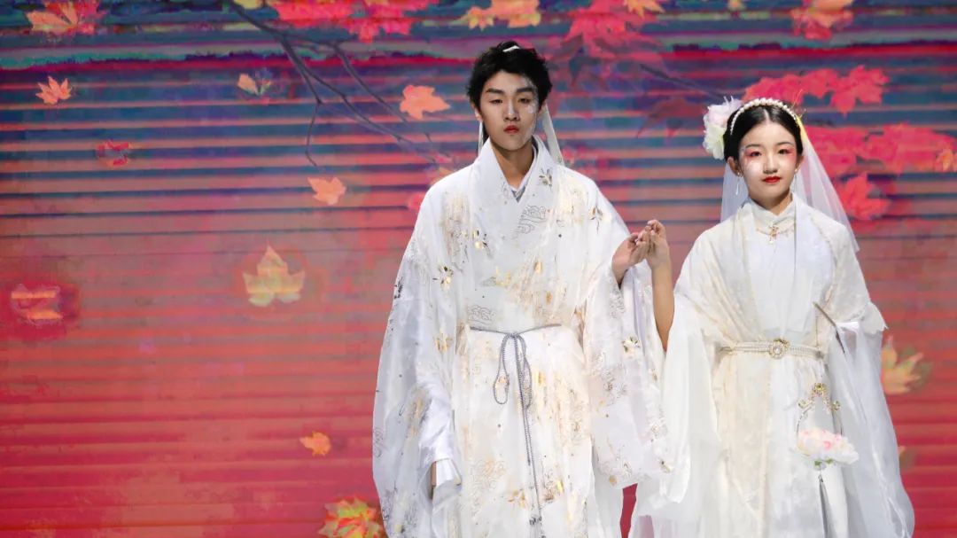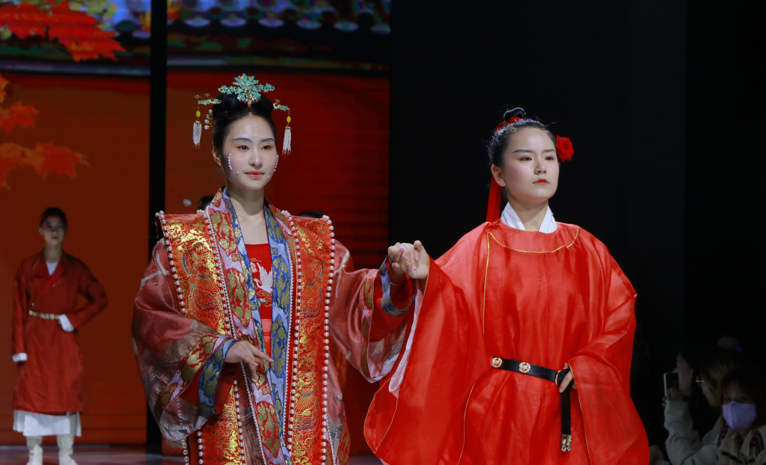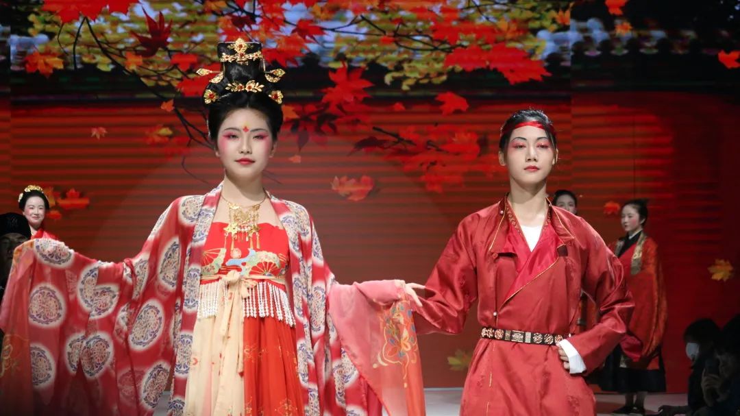 比赛分为以下环节:国潮原创造型风格设计、EMC潮T搭配设计、国风原创造型风格设计、旗袍造型风格单元、历代汉服红妆与敦煌造型单元。本次赛事主要考评服装设计和妆造,对同学们服饰与造型的综合能力具有较大挑战。本次比赛中的服装展示邀请了川影播音主持学院、服装表演系等同学担任模特。在一段热烈的舞蹈表演后,大赛拉开帷幕。