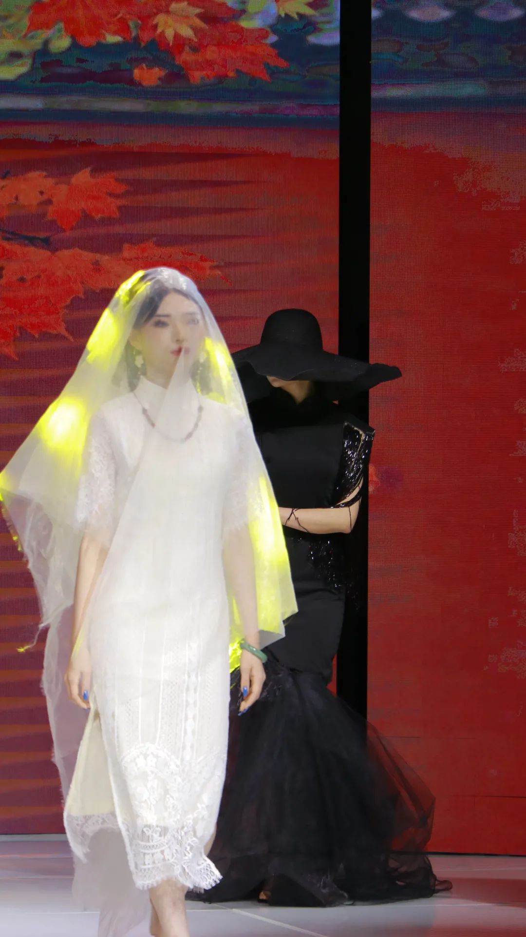接着是国风组10套作品的展示。比赛要求国风组的同学在设计服饰上要讲究古典审美与现代时尚的结合,将传统融入潮流。国风组的服装设计结合中华经典元素,搭配上繁复、灵动的妆造,可谓是相得益彰。