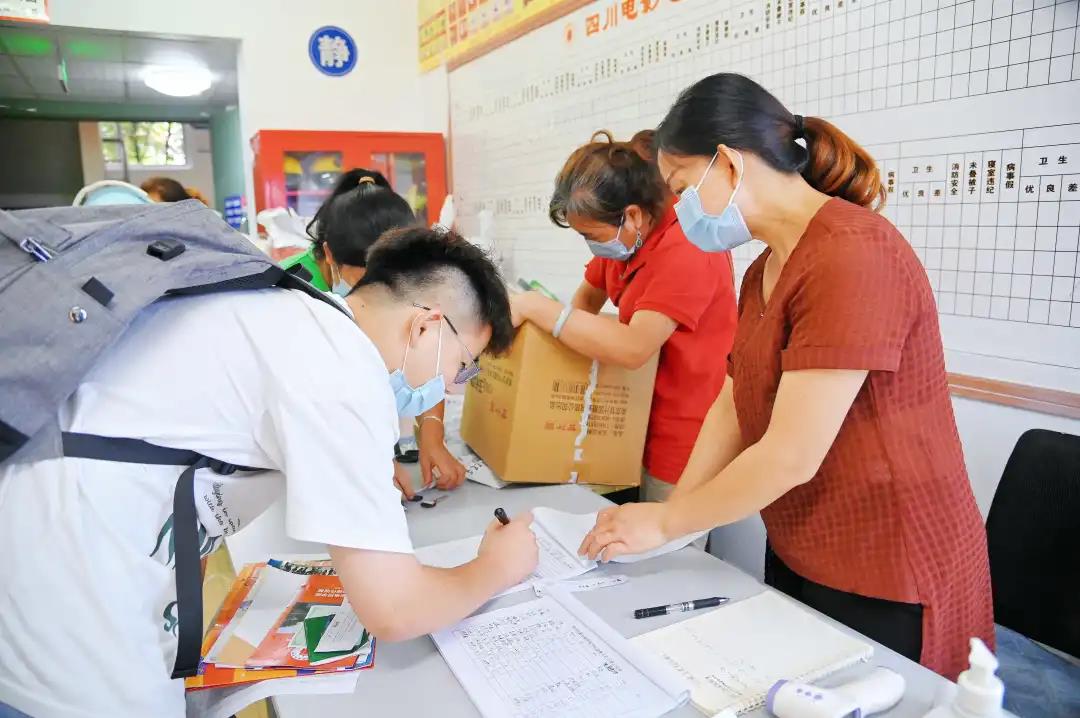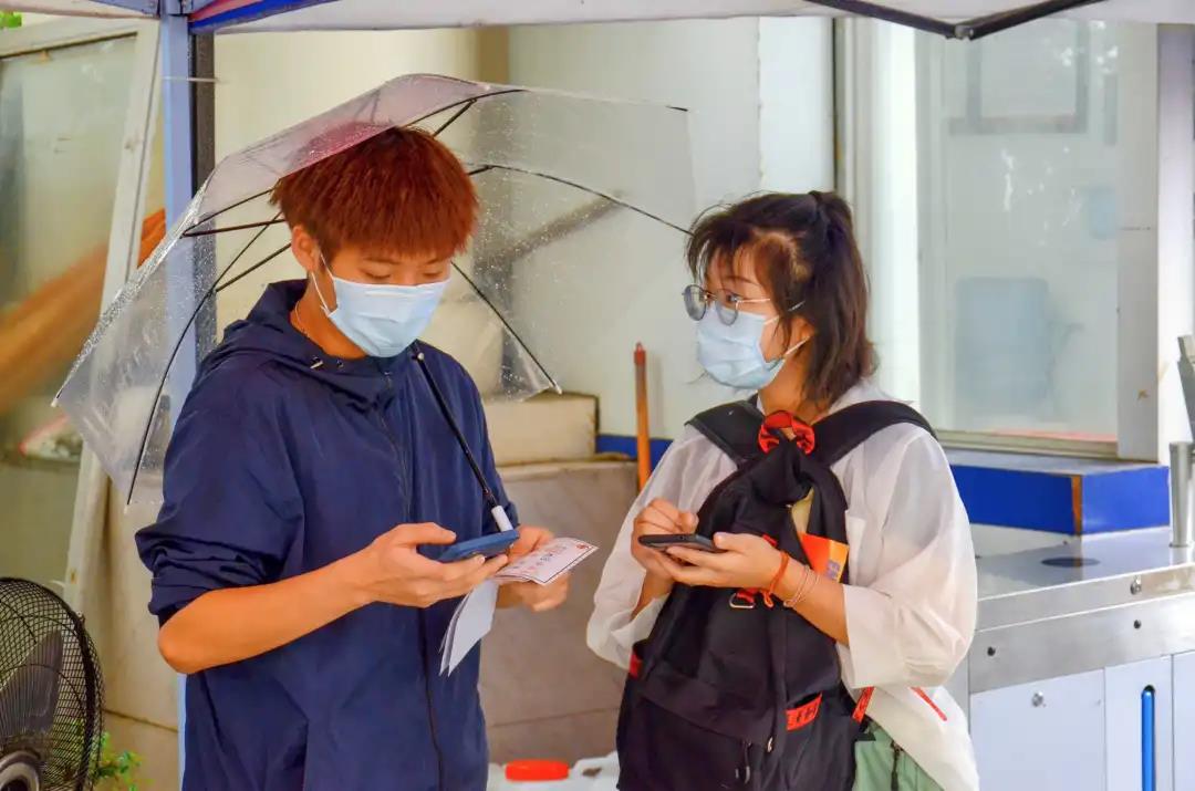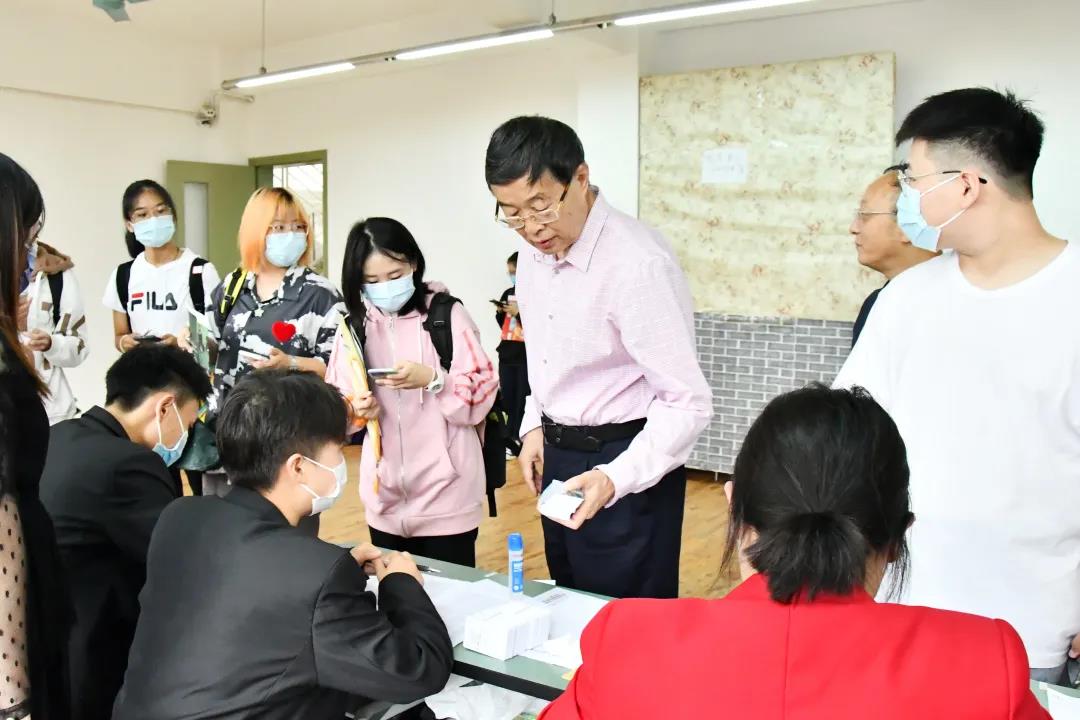 今年因为疫情防控,家长不能进入校园,为确保新生报到安全,学校充分准备、周密部署,疫情防控工作细致入微。学生入校前需提供48小时核酸检测阴性证明、天府健康通绿码,在校门口经过测温、信息审核、行李消杀后方可入校。按照疫情防控要求,学校设置了核酸检测点,为到校新生提供二次检测。新生报到的过程中许多老师、辅导员、志愿者们一直陪伴身旁,悉心关怀,提供行李寄存等服务,热情而温暖。校长罗共和、党委书记王小林、常务副校长李健等校领导来到迎新现场,慰问现场工作人员和志愿者,欢迎前来报到的新生们,并与他们亲切交谈。