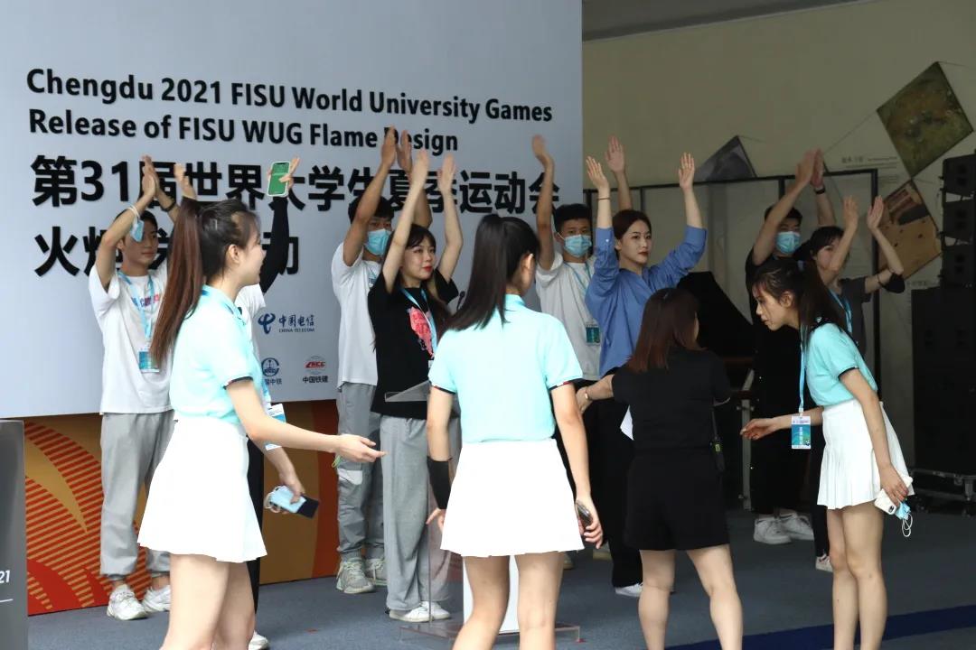 本届成都大运会火炬发布仪式上,川影56名志愿者分别在现场担任发布会礼仪、现场接待、活动指引等工作,在各个岗位充当着服务大运、助力大运的一份子。