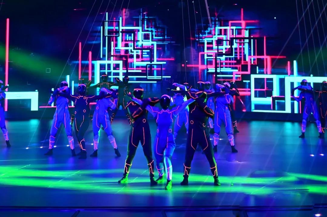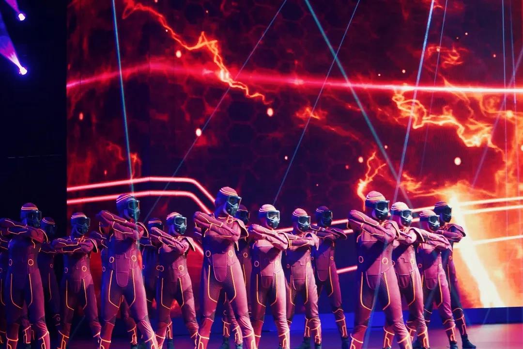 其中,我校音乐与舞蹈学院舞蹈系教师严杨星鑫参与决赛开闭幕式编导工作,并与大赛举办方导演林慰义、林晟昱,共同编排了我校46名学生参与的节目《机甲战士》。