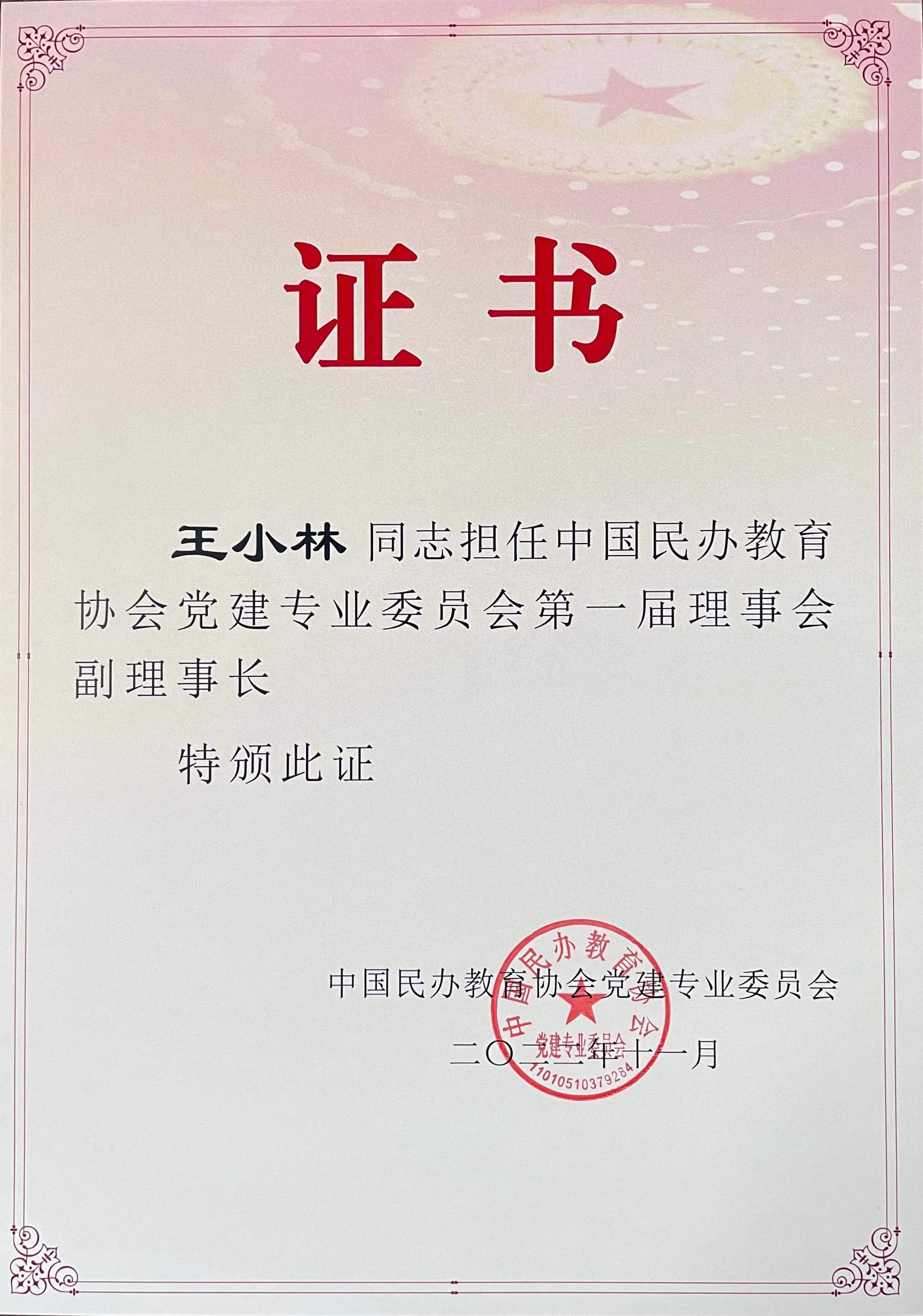 川影党委书记王小林(左)当选中国民办教育协会党建专业委员会第一届理事会副理事长