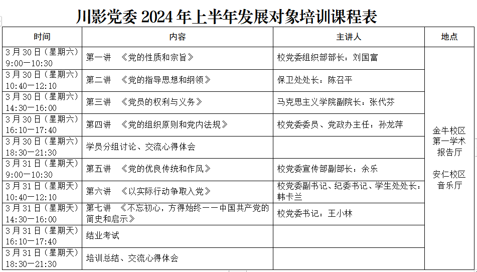 根据校党委发展党员计划安排,为顺利完成2024年上半年发展对象培训,现将相关事项通知如下: