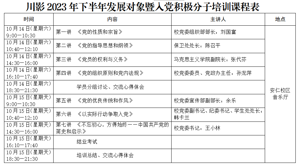 2.川影党委2023年下半年发展对象暨入党积极分子培训课程表