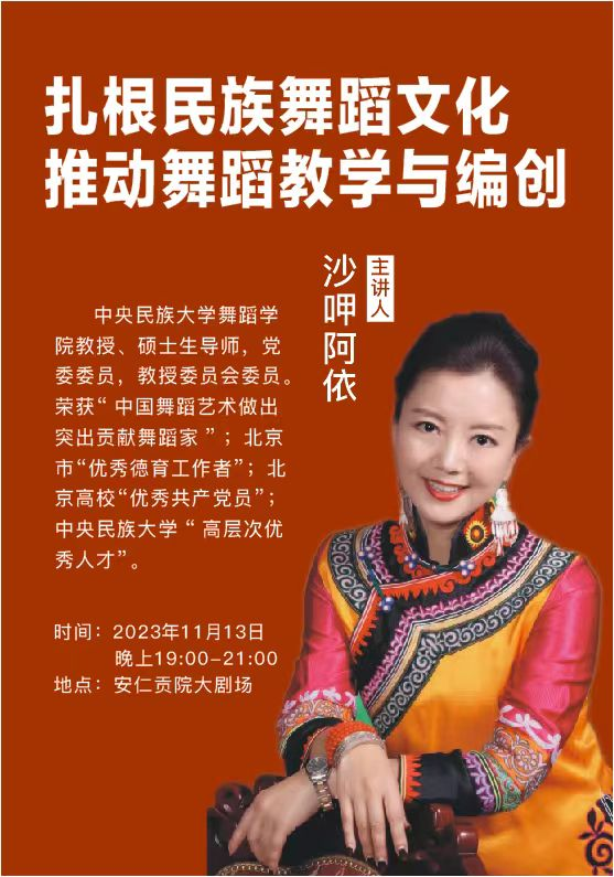 为了提升我院青年教师专业水平,培养青年教师的教学与创作能力,促进“双师型”教师的高质量持续性发展,达到优化师资队伍建设的目的,澳门网投唯一官网音乐与舞蹈学院2023-2024学年第一学期“大师课计划”邀请到了我国著名舞蹈家沙呷阿依教授。