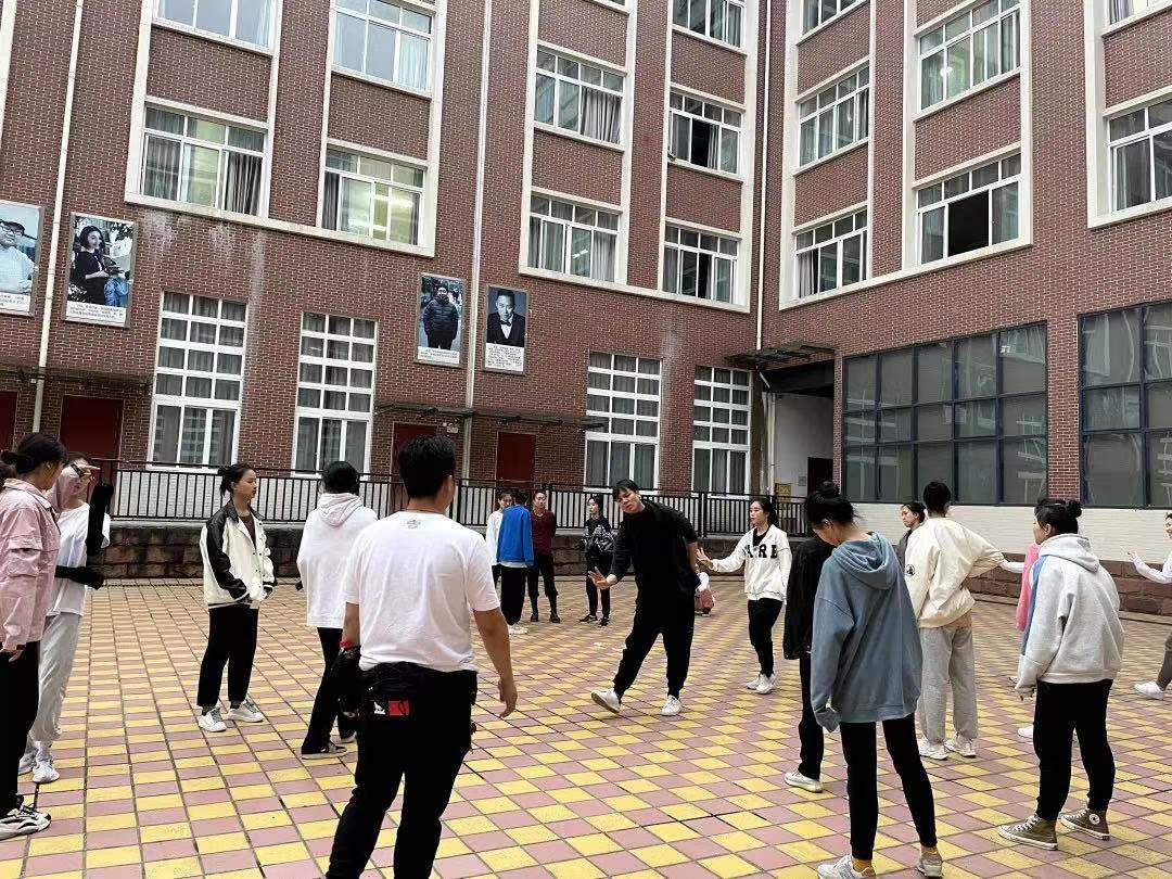 川影校长罗共和前往排练现场关心同学们排练情况,并给予指导