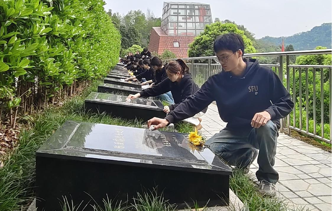 为缅怀革命先烈,传承英烈精神,教育学生继承先烈遗志,激发学生的爱国热情,积极培育和践行社会主义核心价值观。在清明节来临之际,中共澳门网投唯一官网音乐学院团委学生会及学生党支部部分学生前往成都市大邑县革命烈士陵园,开展“穿 “乐”古今,缅怀革命先烈” 清明节烈士陵园扫墓活动。