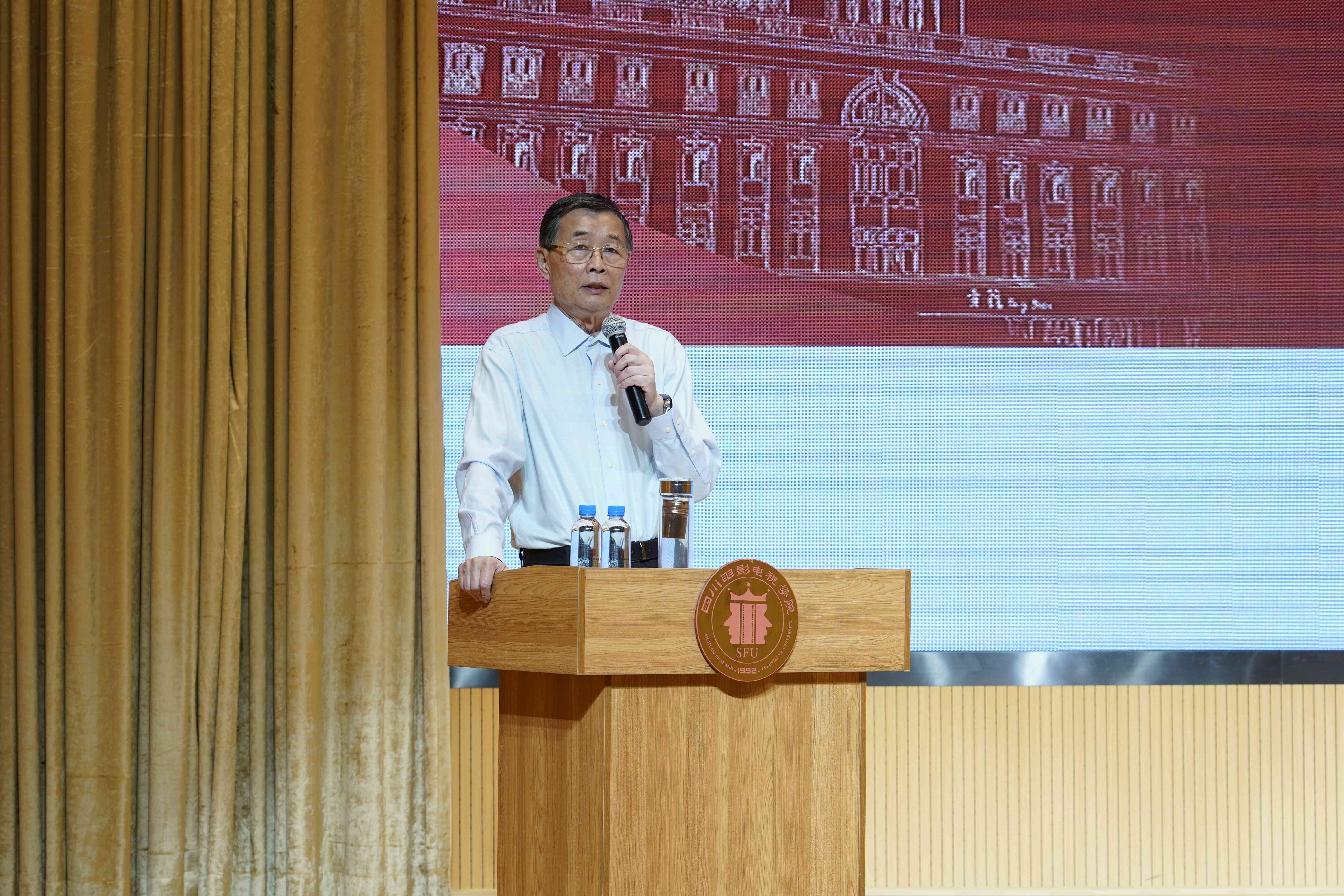 罗校长指出,优秀的作品形如流水,润物细无声般地给予我们深刻的启迪和滋养。他鼓励同学们不要忘记中华传统文化的精髓,将对其深刻的理解,通过歌声传递给每一个人。在艺术赏析后,罗校长对同学们提出了殷切的期望和要求。希望看到川影同学都能成为有艺术修养的人,也期待有人能成为真正的艺术家。