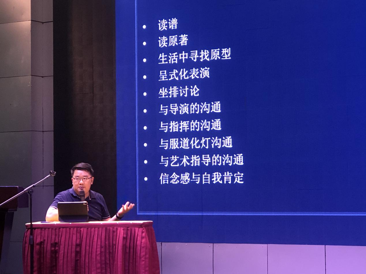 通过总结歌剧演员的工作法,他介绍了包括读谱、读原著、生活中寻找原型、呈式化表演、坐排讨论、与导演的沟通、与指挥的沟通、与服道化灯沟通、与艺术指导的沟通、信念感与自我肯定的十项工作法。这套工作法具有极强的实践性。