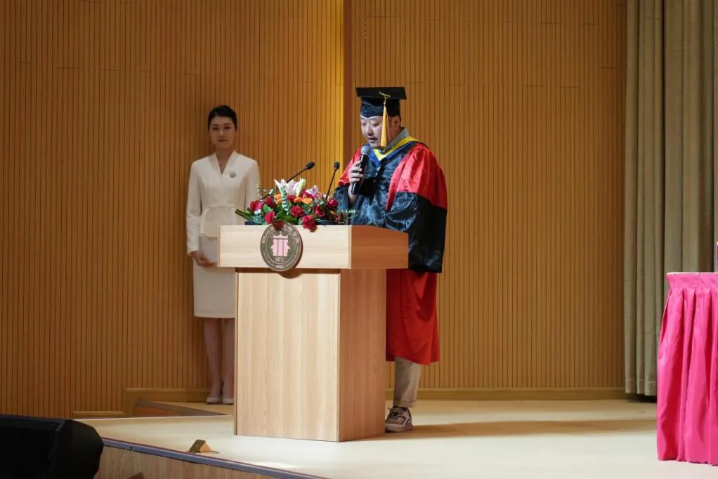 学校副校长于世祥激励即将步入社会的毕业生们立志远大,同时脚踏实地。他向学子们提出了三个殷切的希望:首先,要始终怀揣着为国家和人民服务的初心,明确设定未来的奋斗目标;其次,鼓励大家要坚定不移地实践自己的所学,利用大学期间积累的知识和技能,在激烈的社会竞争中稳固立足,勇敢面对各种挑战;最后,希望毕业生们不要忘记母校的培养,保持与学校的持续联系,通过不断地学习和成长,将川影的精神不断传承并发扬光大。