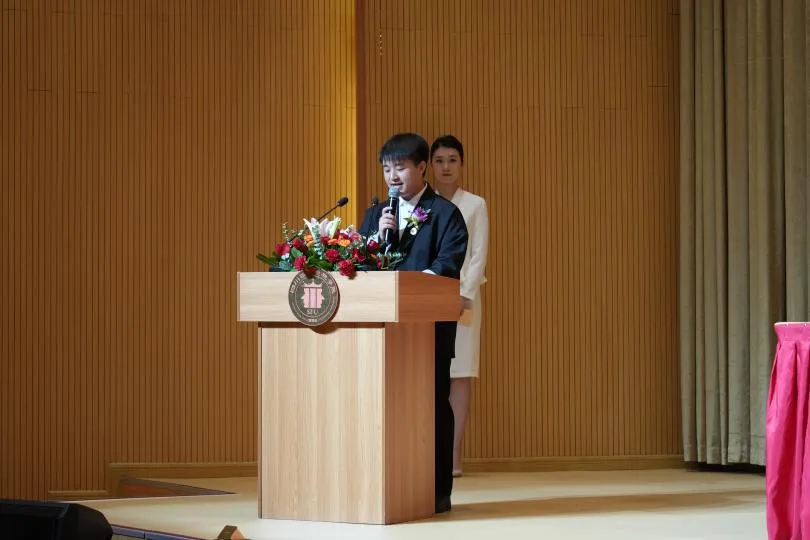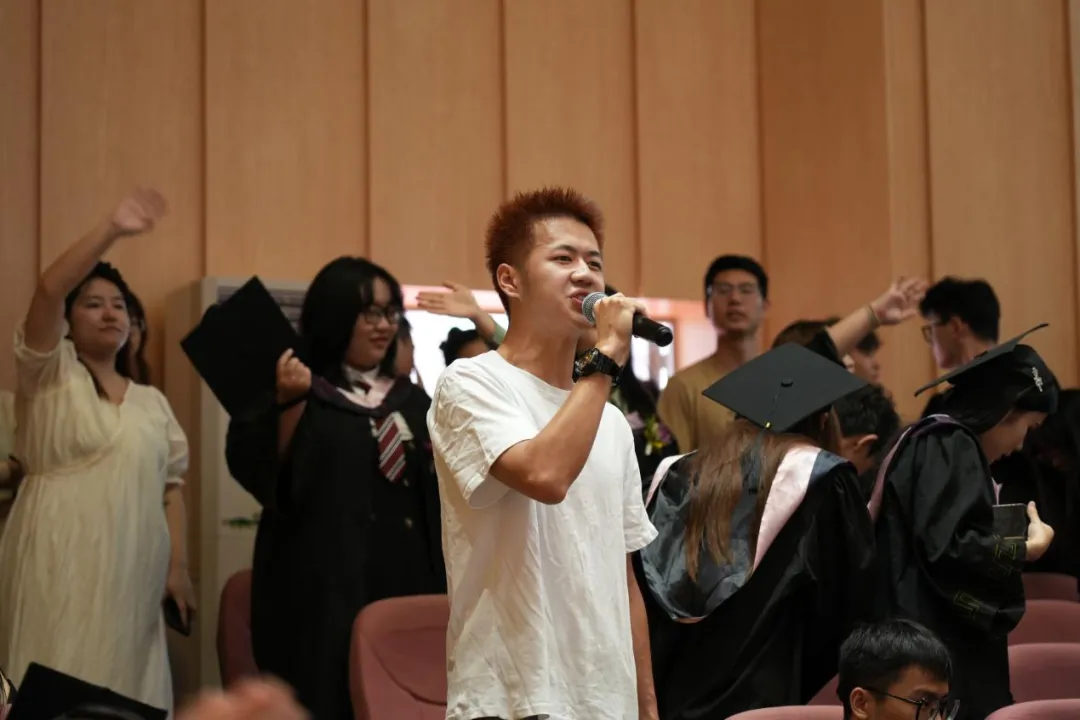 在校生代表23级音乐表演(本)07班s卿耘豪为学长学姐们送上了最诚挚的敬意和祝福,愿学长学姐们在人生的道路上越走越宽广,未来充满希望和阳光!