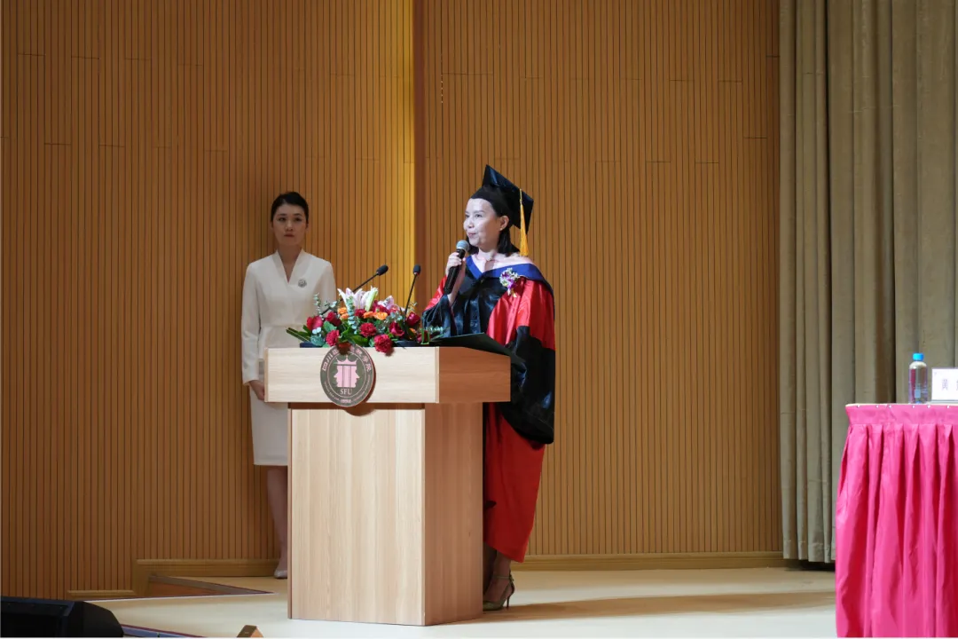 学院副院长黄娟教授向圆满完成学习的同学们致以热烈祝贺,希望同学们在充满了挑战和机遇的未来始终保持一个学习的心态,不断提升自己,勇敢追求梦想。并同学们提出几点祝愿:第一,希望你们始终保持对知识的热爱。第二,希望你们坚守诚信,做一个有道德的人。第三,希望你们学会合作,共同成长。第四,希望你们保持激情,追求卓越。第五,希望你们珍惜身边人,感恩生活。